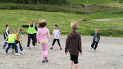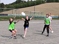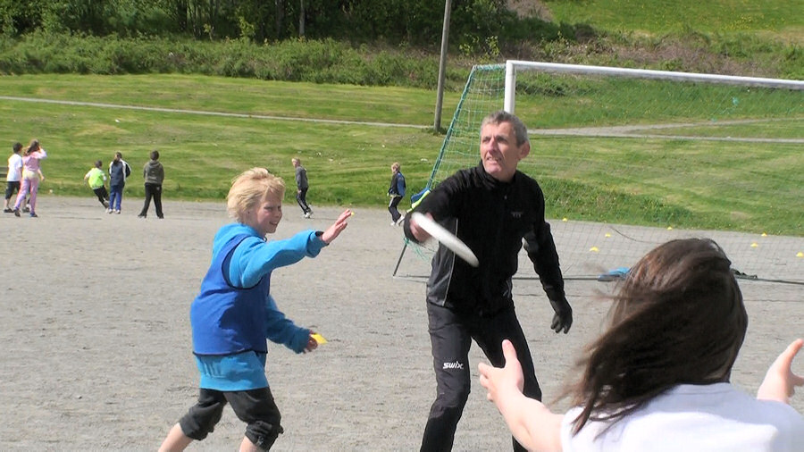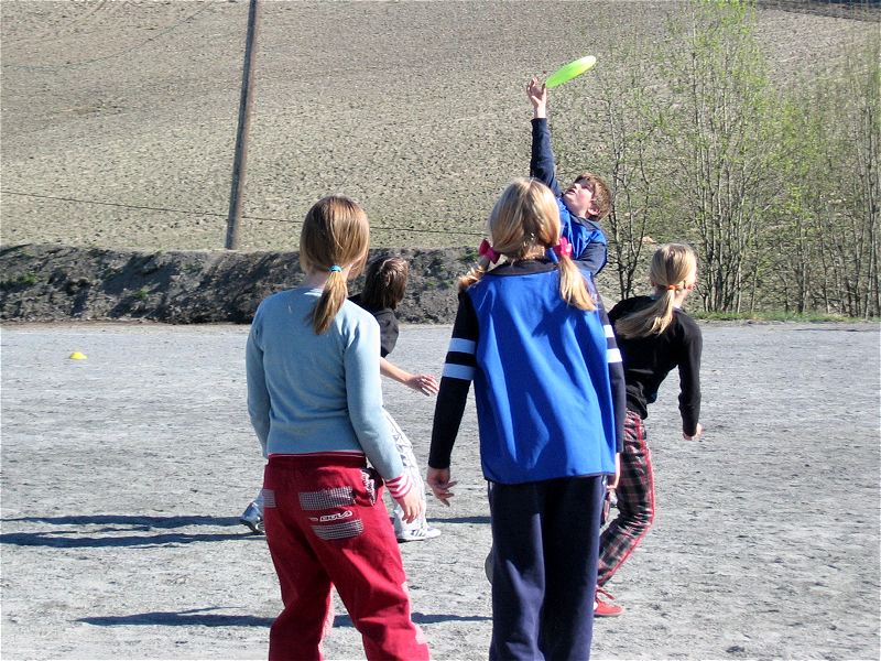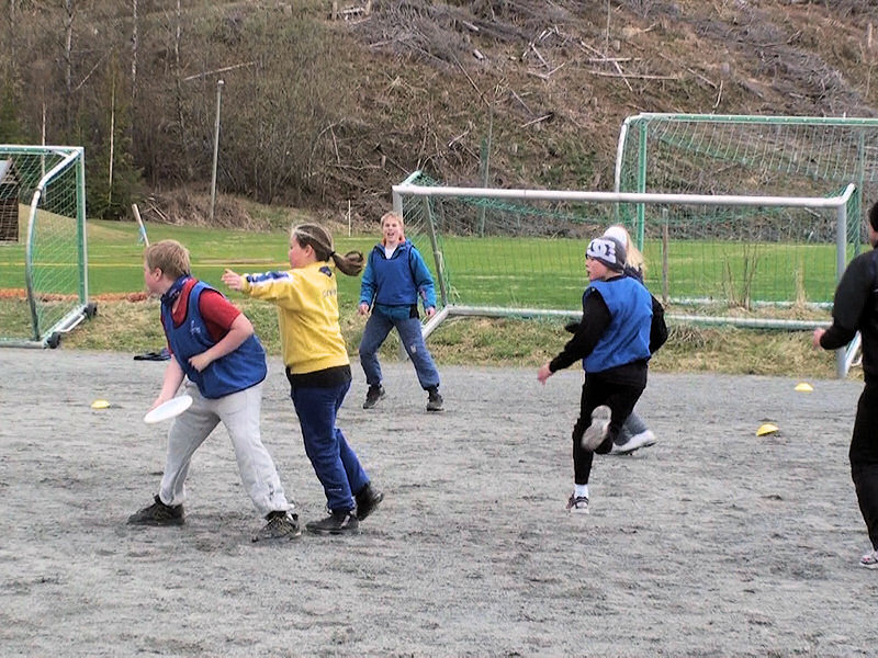 4 kuldegrader og frost i morgentimene var nok til å sette en stopper for det planlagte arrangementet på Heradsbygda Stadion. Men gleden var stor da skolen og discsport klubben arrangerte ultimate noen timer senere på skolegården! Med skolens disker og markører, kunne vi sette i gang ultimate kamper for femti 7. klasse elever. Elevene er så godt kjent med ultimate nå at det eneste å holde styr på er innbytte av spillere. Enkelt å sette inn spillere, men vanskeligere å ta dem ut. Gøy med disker -- helt i slutten av utendørs sesongen!