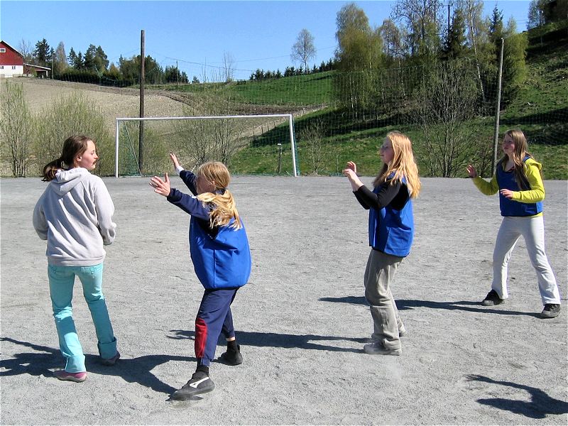 Fredag 17. september arrangerte Helgerud Skole deres årlige Aktivitetsdag i Hønefoss Idrettspark for 5., 6. og 7. klasse elever. Hønefoss Discsport Klubb hjalp til med ultimate, og barna fikk spille på en 50m x 25m ultimatebane. At det blåste og regnet hardt spilte ingen rolle -- det ble høyt tempo fra start til slutt! Vi startet med oppvarming (kast-og-mottak), og samtidig fikk barna tips om kasteteknikk (forehand-kast og backhand-kast) før vi satte i gang med ultimate. 7. og 6. klasse elevene kunne allerede ultimate-reglene fra før mens 5. klasse elevene fikk sin første introduksjon til ultimate. Etter en forklaring av reglene, var det full fart på kort tid! Den aller første gang elever ved Helgerud Skole fikk spille ultimate var om høsten 2001 etter at skolen kontaktet Hønefoss Discsport Klubb. Siden den gang, har det vært mange morsome disk-treff, med både ultimate og andre discsport. Vi ser fram til flere!