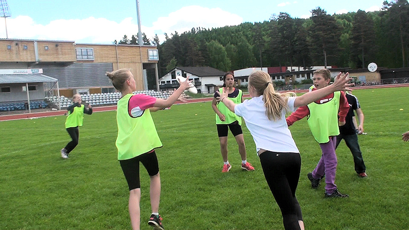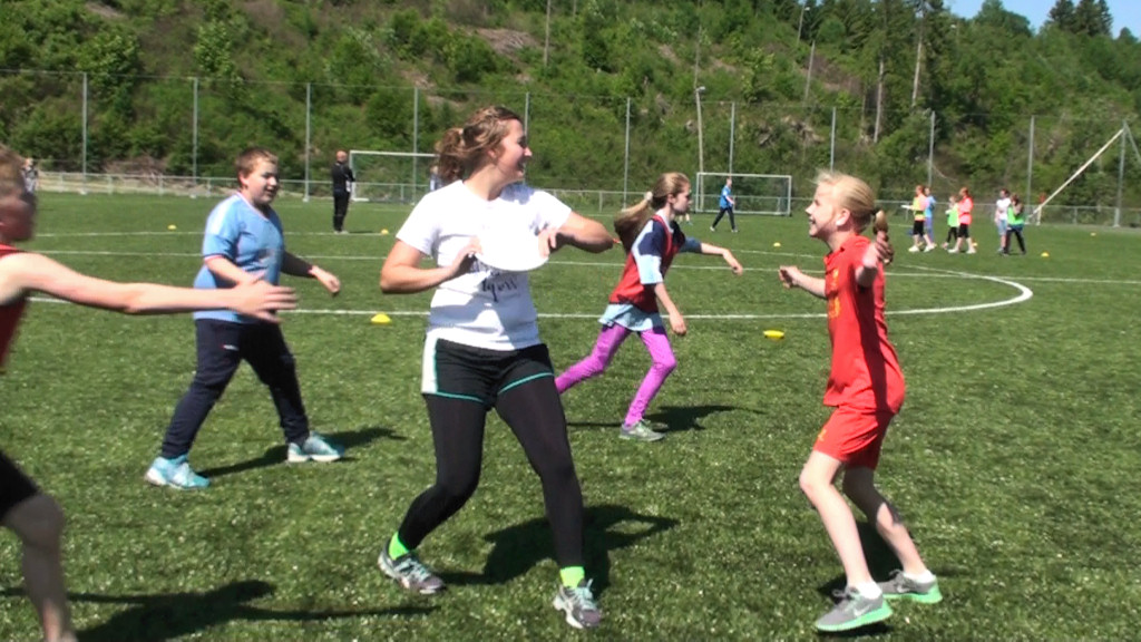 Aktivitetsdag og ultimate i Hønefoss Idrettspark med Helgerud Skoles 5. 6. og 7. klasse elever! Backhand- og forehand-kast ble forklart og demonstrert, så ble det kast-og-mottak en stund med tips om kasteteknikk. Etter oppvarmingen, ble ultimate reglene forklart og kampene satt i gang.