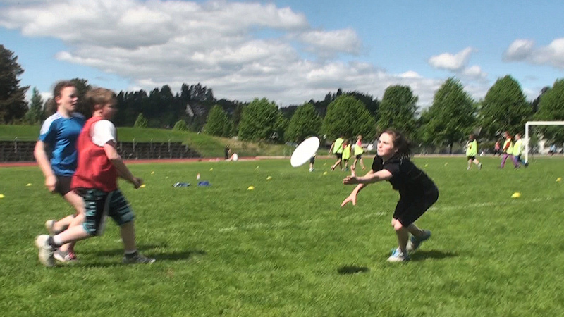 Ultimate mm. med Helgerud skoles 6. trinn. Freestyle triksing, discgolf kast (lengde, rollers) og self-caught flight (som elevene deltok i) før det ble spilte både ultimate og stafettløp.