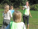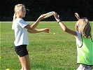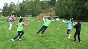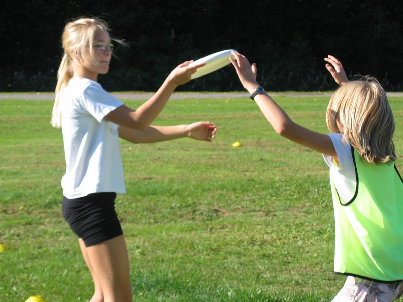 Vi gikk gjennom hvordan å kaste backhand og forehand kast og brukte en god del tid på disse to ...spesielt forehand kast. Barna var ivrige på å få det til (det ser jo så enkelt ut!) og hadde mange spørsmål om det ene og det andre. En god del småting må til for å kaste et bra forehand kast: fram med den ene foten, ha vekten på bak benet, ikke bøy albuen så mye, vinkle disken ned, bøy håndledet tilbake, kast med god snert i håndledet istedenfor å bruke armen for å kaste. Alltid gøy å lære noe nytt!