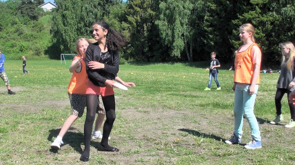 Hønefoss skoles 7. trinn kom til Hengsle "ready for action"! Dette var elevenes første introduksjon til ultimate, og de lærte mye i løpet av de 2,5 timene med diskene. Klassen skal delta i Ultimate Cupen på AKA Arena (bare 12 dager etter dette treffet). Vanligvis treffer vi elevene om våren når de fortsatt går i 6. klassen, men det viste seg å ikke være mulig å finne en dato før etter sommerferien. Men etter 2,5 timers med godt spill, er de klare!