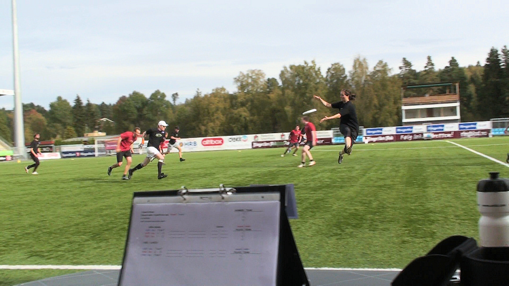 Utendørs ultimate spilles 7-mot-7 på en 100x37m bane med 18m dype målsoner. På AKA Arena, som er en 105x68m kunstgressbane, setter vi opp en 105x37m bane med 16m dype målsoner. Men siden mange spillere som ønsket å delta i turneringen ikke kunne, spilte vi 5-mot-5 (3 kamper med 2 lag, slik at vi kunne ha innbyttere) på en 89x37m bane med 16m dype målsoner. Kampene gikk til 11, med 2 mål poengforskjell og point cap på 13.