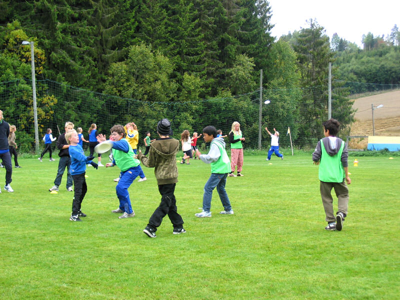 Med på årets Cup var 4 skoler: Helgerud, Eikli, Hønefoss, Veien. 120 elever og 3,5 timer med spill på 6 ultimate baner. Barna fra alle skolene WERE ON FIRE! I tillegg til Adrian Oleson (Hønefoss Discsport) var også Thomas Finborud (Stovner Disc Klubb) og Henrik Sköld (Sverige, landslag U19 og Linköping Ultimate) tilstedet. For å finne ut hvilke lag som skulle representere skolene i semifinale kampene, startet turneringen med at hver skole fikk sin egen bane hvor sine 3 lag spilte 2 kamper hver i en slags "intern konkurranse." Mens disse innledende kampene ble spilt fikk de lagene som hadde pause spille mot lag fra forskjellige skoler i treningskamper hvor de fikk tips og veiledning før de returnerte til turneringen. Vi så mye bra lagspill, høyt tempo ble opprettholdt (kast-og-løp), og ikke bare backhand men også forehand ble flittig brukt. Spillerne fra alle skolene viste god sportsånd og fair play, noe som ultimate spillere verden rundt legger stor vekt på. Vi sees på banen! |