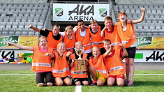 | Hønefoss Ultimate Cup 2014 - resultater og oppsummering Gratulerer til Ullerål skole som vant årets skolecup i ultimate! 1. plass: Ullerål 2. plass: Veien 3. plass: Hedalen 4. plass: Helgerud 5. plass: Hønefoss Ullerål spilte mot Veien i finalen. Ingen lett kamp, men Ullerål klarte å kontrollere kampen fra 5-3 og vant til slutt 7-3. Hedalen var nære å vinne sin pulje, som inkluderte Veien skole. Hedalen stiller alltid sterkt. I år besto halvparten av Hedalens lag av 6. klasse elever i denne turneringen for 7. klasse elever. Bare ett mål skilte 1. og 2. plass lagene i denne puljen. Imponerende! Helgerud tapte sin kamp i "sudden death" puljen med cupvinnerne Ullerål 2-5, mens Hønefoss skole kom på tredjeplass i sin puljen (sammen med Veien og Hedalen) uten å score. Tøffe kamper, fair play og mye moro! |