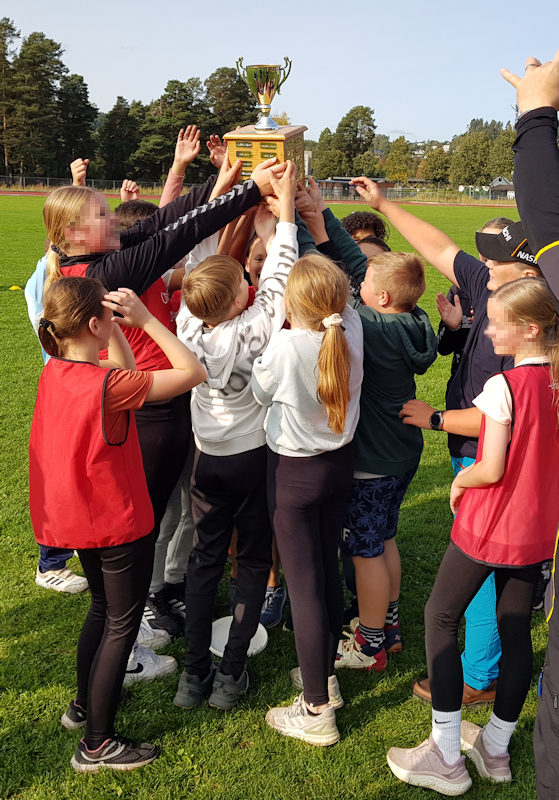 OPPSUMMERING: Helgerud skole vant den tyvende årlige skolecupen i ultimate 7-1 mot Ullerål skole, og med det ble cupmestere for 11. gang siden cupen startet i 2002 og får ta med vandretroféet tilbake til skolen. Skolen har nå vunnet cupen i 2023, 2018, 2015, 2013, 2011, 2010, 2008, 2006, 2005, 2004, og 2002 siden skolen først spilte i den første cupen i 2002. Fra 2009 til 2019 var cupen arrangert på AKA Arena i Hønefoss, men fra 2022 arrangeres nå cupen på hovedgressbanen i Hønefoss Idrettspark og på gressbanen langs hovedveien til idrettsparken (etter behov). Seks baner tilsammen i 2023, med 18 lag og ca. 210 spillere fra 5 skoler. Runde 1 startet kl.09.30, og Runde 2 startet kl.10.50. Tre lag på hver av de seks banene, og full fart med round robin i begge rundene. I finalen møtest helt klart dagens to beste lag som begge spilte en meget bra og underholdende kamp. Finalen ble spilt første mann til syv mål. Helgerud ledet hele veien, men tross den store målforskjellen var det spenning fra start til slutt fordi begge lagene sto på for fullt! Men med sifrene 7-1 ble det en fortjent seier til Helgerurd. Vi gratulerer igjen Helgerud med seieren og begge lag med topp spill! |