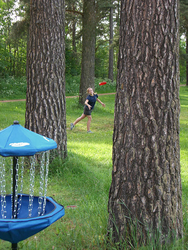 Ingen permanente golfkurver på banen! Vi har to kurver som vi flytter på under spillet for å dekke hullene på begge sidene av banen. Det går ann å benytte hullene vi har merket på banekartet ved å bruke trærne som golfkurver (vi plasserer kurvene like ved trær). Hvis noe er uklart (f.eks. hvilket tre man skal treffe e.l.), er det bare å bli enig om noe. :-) |