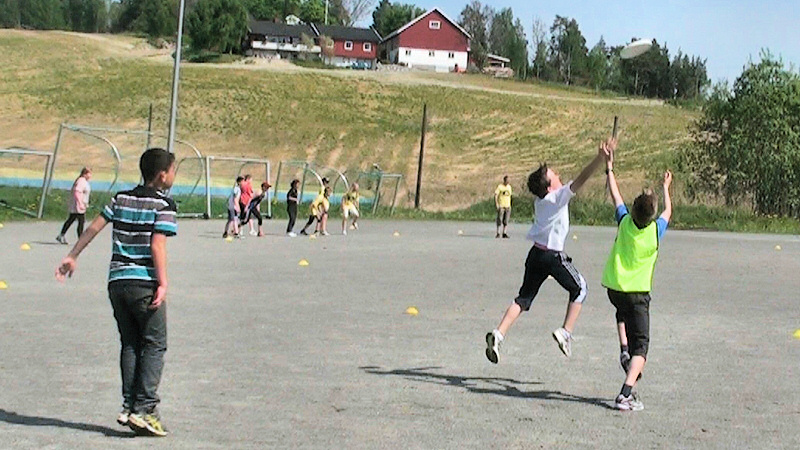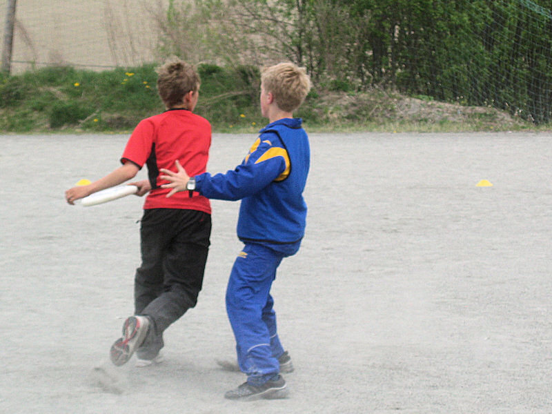 Fredag 23. mai arrangerte Helgerud Skole deres årlige Aktivitetsdag i Hønefoss Idrettspark for 5., 6. og 7. klasse elever. Over 100 barn var i idrettsparken for å være med på diverse aktiviteter, og Hønefoss Discsport Klubb hjalp til med ultimate. Vi spilte på en 50m x 25m ultimatebane, og under spillet var det høyt tempo -- fra start til slutt! Barna var delt opp i 8 grupper, og hver gruppe besto av barn fra alle tre klassetrinn. 7. klasse elevene kunne allerede ultimate mens mange av 6. klasse elevene, og alle 5. klasse elevene, fikk sin første introduksjon til ultimate. Etter en forklaring av reglene, og svar på spørsmål, var det full fart på kort tid!