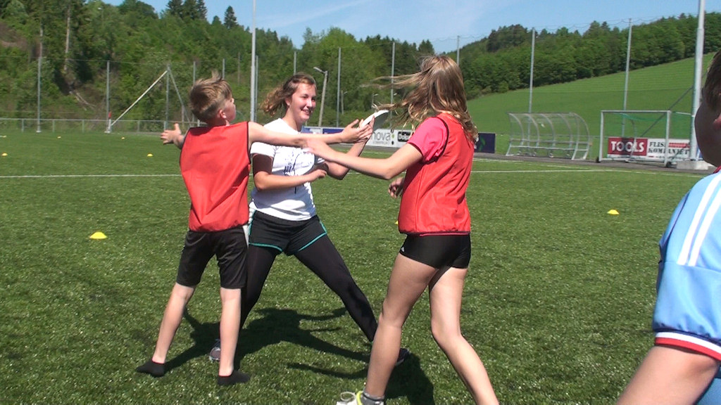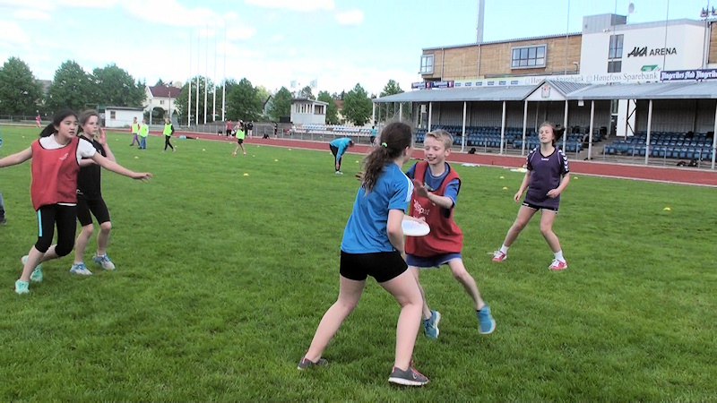 Aktivitetsdag og ultimate i Hønefoss Idrettspark med Helgerud Skoles 5. 6. og 7. klasse elever! Backhand- og forehand-kast ble forklart og demonstrert, så ble det kast-og-mottak en stund med tips om kasteteknikk. Etter oppvarmingen, ble ultimate reglene forklart og kampene satt i gang.