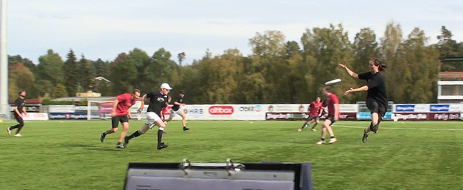 Utendørs ultimate spilles 7-mot-7 på en 100x37m bane med 18m dype målsoner. På AKA Arena, som er en 105x68m kunstgressbane, setter vi opp en 105x37m bane med 16m dype målsoner. Men siden mange spillere som ønsket å delta i turneringen ikke kunne, spilte vi 5-mot-5 (3 kamper med 2 lag, slik at vi kunne ha innbyttere) på en 89x37m bane med 16m dype målsoner. Kampene gikk til 11, med 2 mål poengforskjell og point cap på 13.