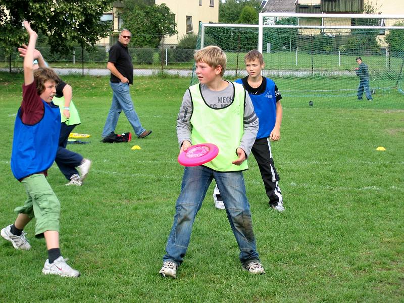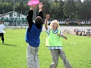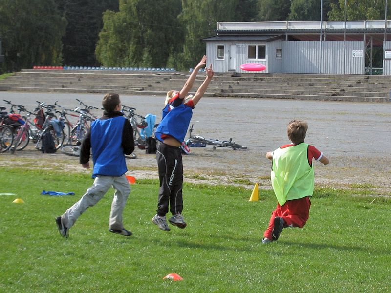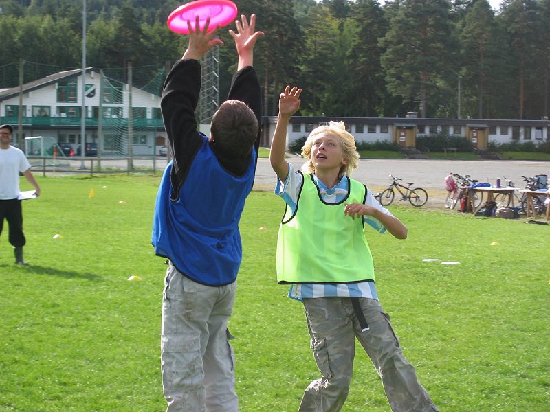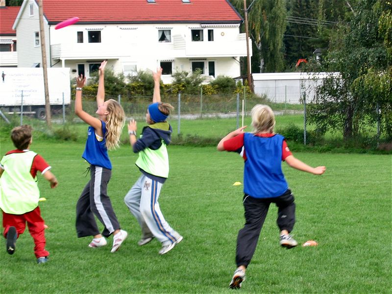 I årets cup kom begge skolene til idrettsparken med 3 lag hver, og begge skolene fikk hver sin bane (pulje) hvor sine lag spilte 2 kamper hver. Puljevinnerne representerte sine skoler i finalen. En tredje bane ble brukt til treningskamper mens turneringskampene pågikk. Barna har spilt ultimate i skolen siden 5. klassen og spilte med stor iver i cupen. Under treningskampene fikk de tips og veiledning som kunne settes ut i livet i turneringskampene, i både forsvar- og angrepspillet. Spesielt nyttig var tips om å ta tiden til hjelp og ikke forhaste seg med å bli kvitt disken. Noen av lagene fikk en så bra forståelse av posisjonene at de delte ut posisjoner (foran, bak) til sine spillere og la "handlerne" (som spiller bak) ta opp disken på avkast og turnovers. Meget nyttig. Og det så vi! Finalen ble en spennende kamp med mye bra forsvarspill fra begge skolene, men det var Helgerud som hadde overtaket i angrep og vant tilslutt 7-2. |