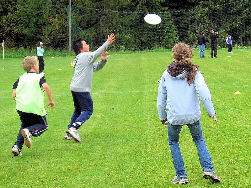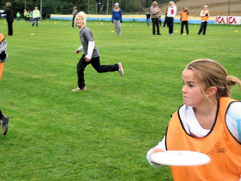 Med på årets Cup var 4 skoler: Helgerud, Eikli, Hønefoss, Veien. 120 elever og 3,5 timer med spill på 6 ultimate baner. Barna fra alle skolene WERE ON FIRE! I tillegg til Adrian Oleson (Hønefoss Discsport) var også Thomas Finborud (Stovner Disc Klubb) og Henrik Sköld (Sverige, landslag U19 og Linköping Ultimate) tilstedet. For å finne ut hvilke lag som skulle representere skolene i semifinale kampene, startet turneringen med at hver skole fikk sin egen bane hvor sine 3 lag spilte 2 kamper hver i en slags "intern konkurranse." Mens disse innledende kampene ble spilt fikk de lagene som hadde pause spille mot lag fra forskjellige skoler i treningskamper hvor de fikk tips og veiledning før de returnerte til turneringen. Vi så mye bra lagspill, høyt tempo ble opprettholdt (kast-og-løp), og ikke bare backhand men også forehand ble flittig brukt. Spillerne fra alle skolene viste god sportsånd og fair play, noe som ultimate spillere verden rundt legger stor vekt på. Vi sees på banen! |