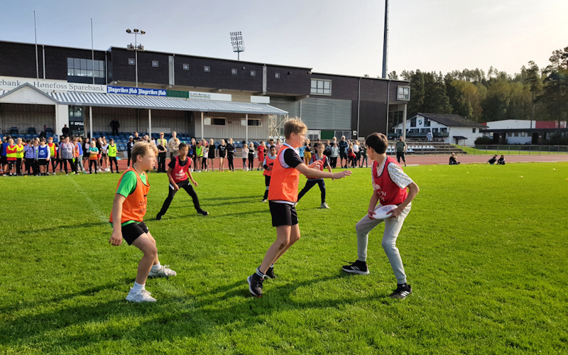 OPPSUMMERING: Helgerud skole vant den tyvende årlige skolecupen i ultimate 7-1 mot Ullerål skole, og med det ble cupmestere for 11. gang siden cupen startet i 2002 og får ta med vandretroféet tilbake til skolen. Skolen har nå vunnet cupen i 2023, 2018, 2015, 2013, 2011, 2010, 2008, 2006, 2005, 2004, og 2002 siden skolen først spilte i den første cupen i 2002. Fra 2009 til 2019 var cupen arrangert på AKA Arena i Hønefoss, men fra 2022 arrangeres nå cupen på hovedgressbanen i Hønefoss Idrettspark og på gressbanen langs hovedveien til idrettsparken (etter behov). Seks baner tilsammen i 2023, med 18 lag og ca. 210 spillere fra 5 skoler. Runde 1 startet kl.09.30, og Runde 2 startet kl.10.50. Tre lag på hver av de seks banene, og full fart med round robin i begge rundene. I finalen møtest helt klart dagens to beste lag som begge spilte en meget bra og underholdende kamp. Finalen ble spilt første mann til syv mål. Helgerud ledet hele veien, men tross den store målforskjellen var det spenning fra start til slutt fordi begge lagene sto på for fullt! Men med sifrene 7-1 ble det en fortjent seier til Helgerurd. Vi gratulerer igjen Helgerud med seieren og begge lag med topp spill! |